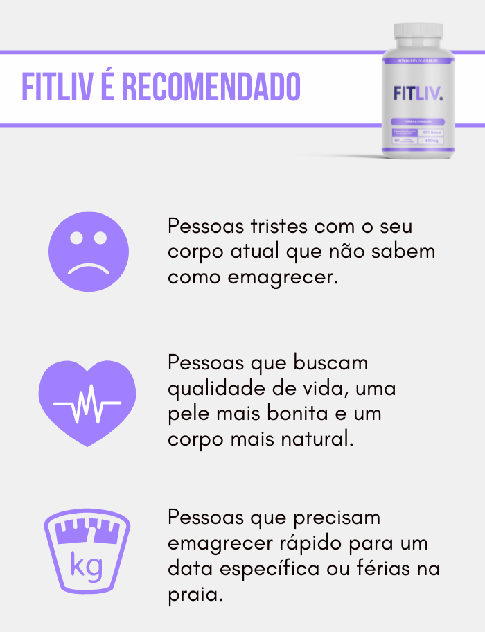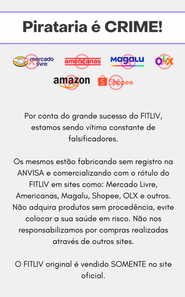 É expressamente proibida a cópia ou reprodução de todas as imagens e textos deste site, ficando os infratores sujeitos as penalidades cabíveis. Os resultados individuais podem variar. Fitliv é um suplemento alimentar e não tem a intenção de diagnosticar, tratar, curar ou prevenir doenças.